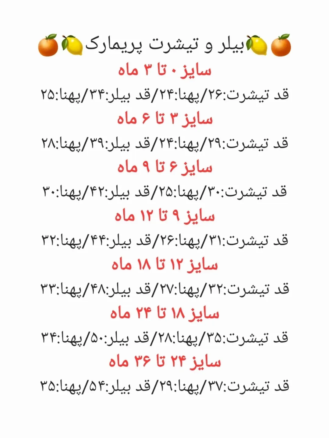 قد تیشرت:۲۶/پهنا:۲۴/قد بیلر:۳۴/پهنا:۲۵